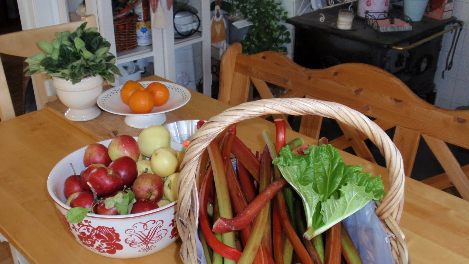 Eplene blir det nok en eplekake av og kanskje eplesaft...rabarbrasaft er også nydelig!