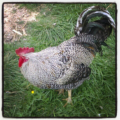 Men denne karen er en mye roligere, en mildere kar.. jeg skjønner jo nå, hvor mye jeg TILPASSET meg lynnet til Sverre... Bjarne, han både spiser av hånden min og passer på alle damene sine.. og fordeler mat til de.. herlig å titte på.. <3 kyllingene, som nå er blitt ganske så store.. titter han nysgjerrig på igjennom nettingen.. og best av alt; jeg må IKKE "watch my back" hihi....Han elsker havregryn <3